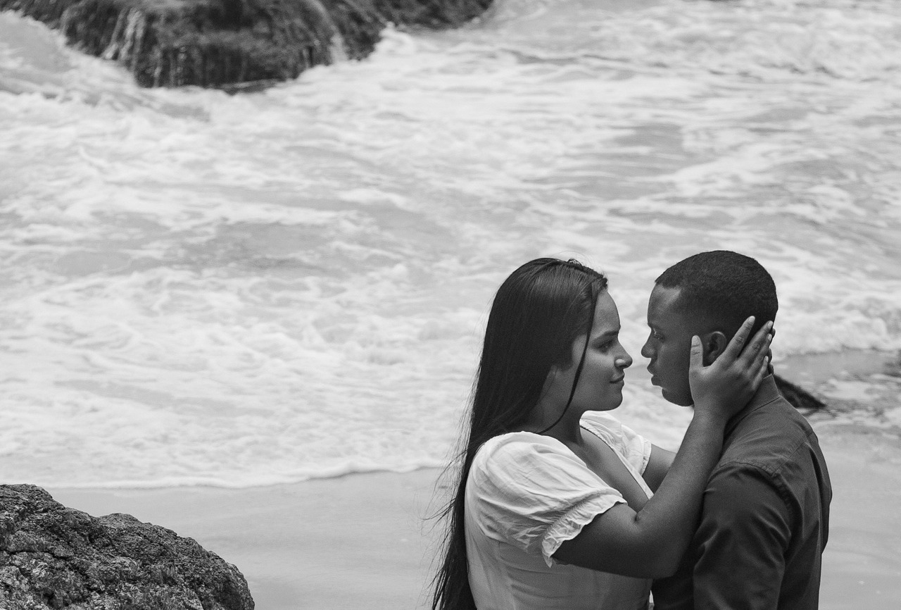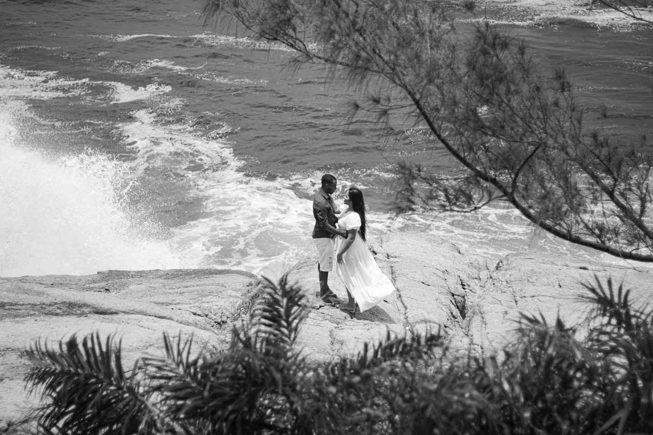 A noiva pediu pra fazermos algumas fotos naquela praia mesmo, já que estávamos ali e depois ir ao local que eu havia convidado a conhecerem e só ficava a 20 min de distância. Então concordamos que ali seria o começo. Na ponta dessa praia a paisagem parecia mais limpa.