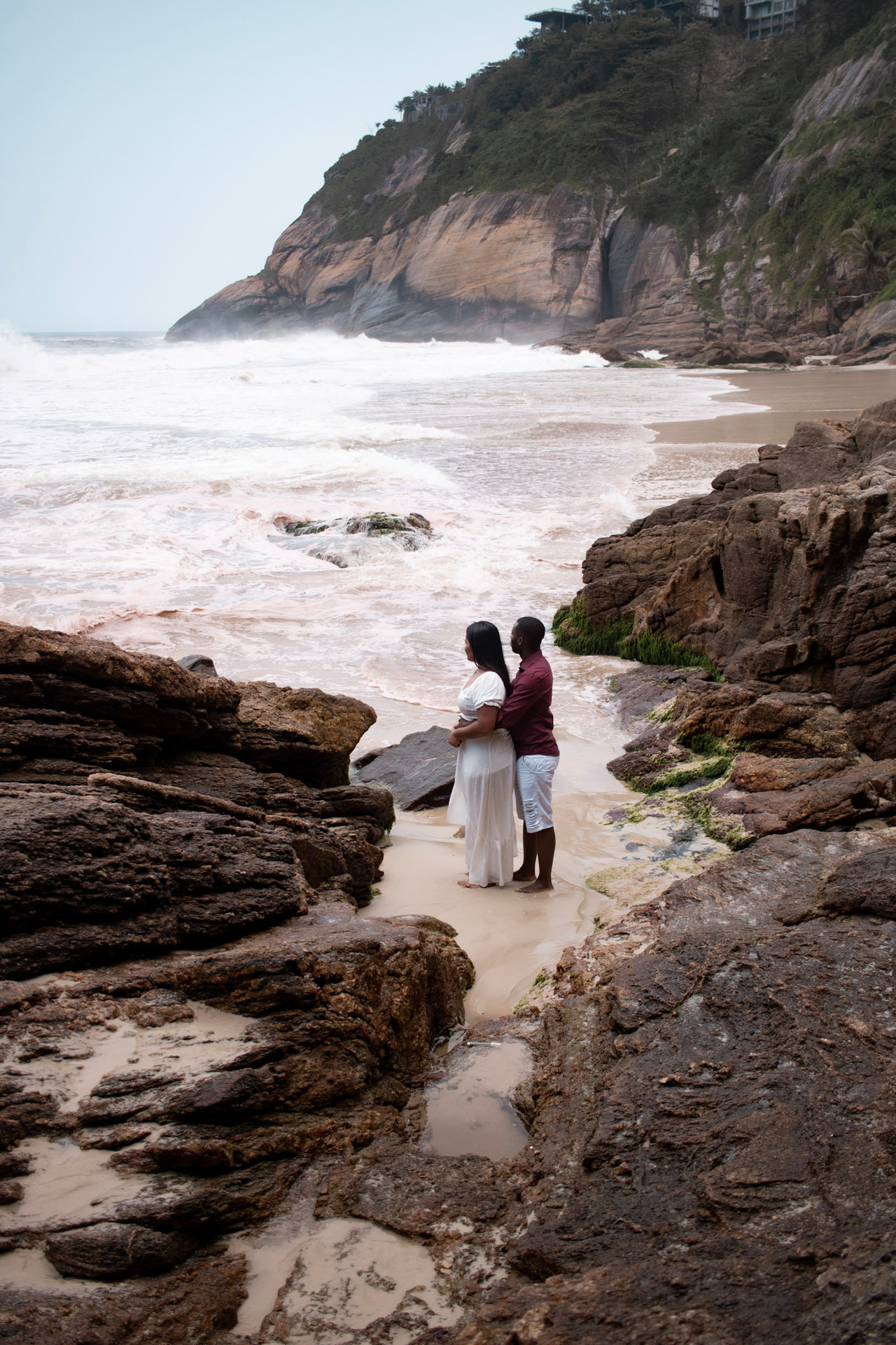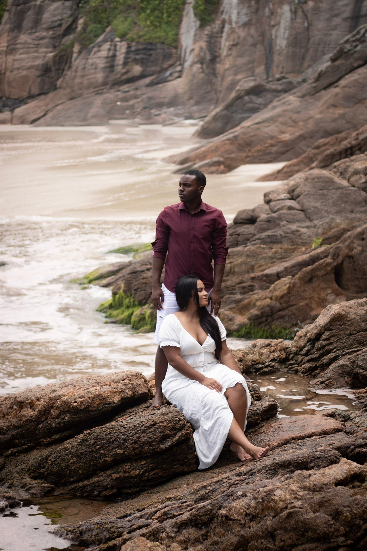 E falando em conforto não podemos nos esquecer de falar sobre figurinos, a roupa é a identidade do casal, então não usem algo que vocês não usariam normalmente, se o ensaio é na praia figurinos de tecido leve e esvoaçantes, vão ficar lindos, cores claras ou em contrastes com a natureza também são bem vindas, então dou a dica de que aproveitem do branco, bege, marrom e tons neutros, ou extremamente fortes, como preto, vermelho, vinho, laranja, que darão grande destaque com a natureza.